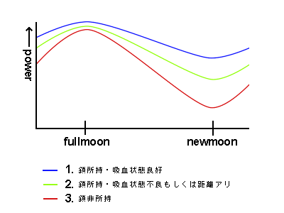 断食状態で20日過ぎると徐々に目が金を帯びてくる。次の新月時には飢えが頂点に達し、完全な金色になり理性を失う。 頂点でなくとも金を帯びてる段階で理性の抑えは通常より効きづらくなくなってきている。 そんな状態でも捕食できれば元に戻るが、摂取できないとなると数日間本能剥き出しのバーサーカー状態となり、やがて死に至る。