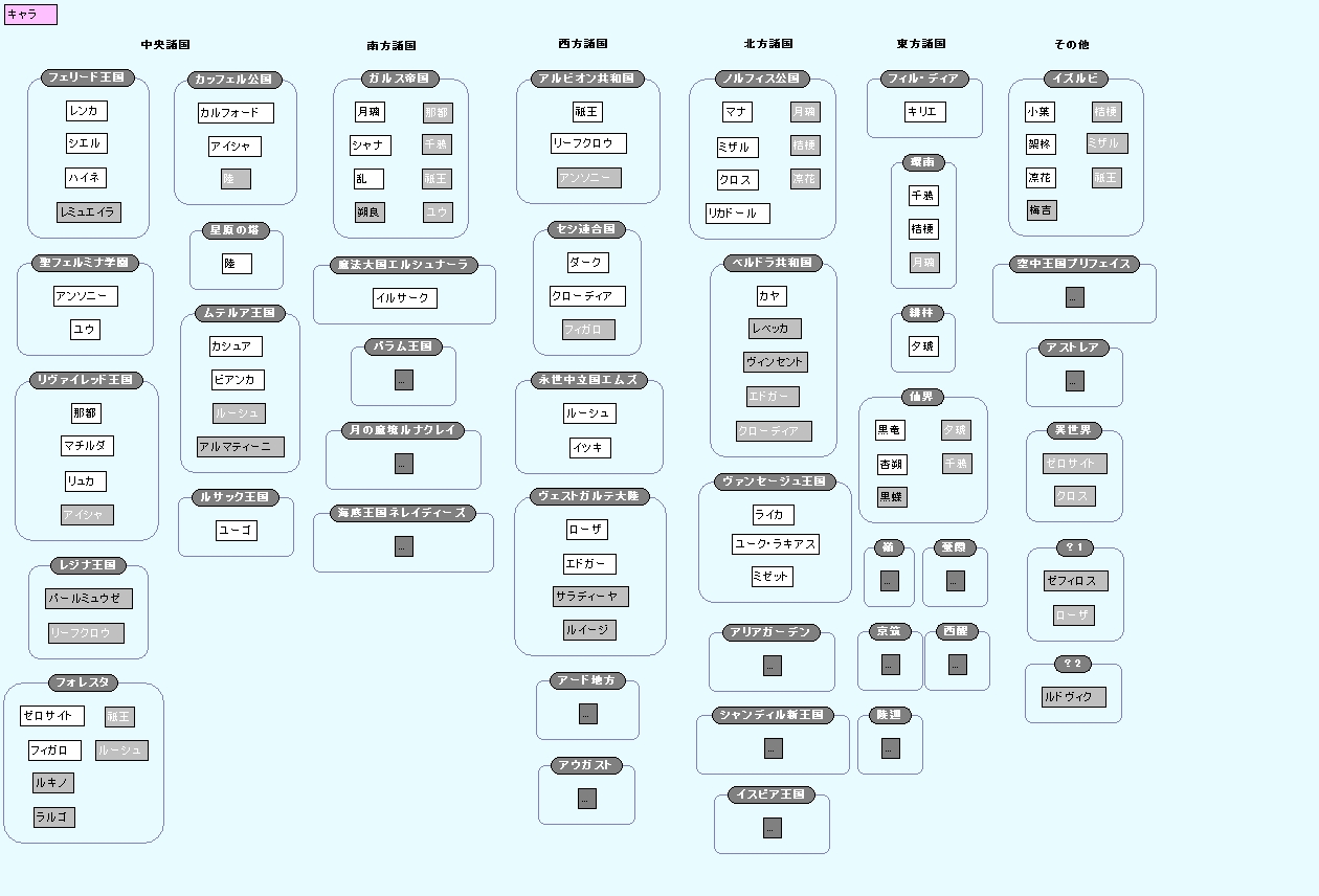 大体地方ごと国ごと自キャラのみでわけてみた。